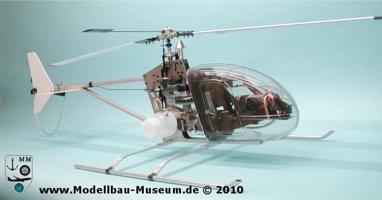 Der Heli-Boy entstand aus der BELL 222 (Trainer). Hatte aber gegenüber diesen wieder einen drehzahlgesteuerten Rotorkopf. Und zielte damit auf die Anfänger, da die Gyro (Kreisel) noch nicht so verbreitet und recht teuer waren. Deshalb habe ich ihm auch noch zweit Anfänger Zubehör-Sets spendiert. Zum einen das Trainingslandegestell und zum anderen einenBesonders schwierig war es noch an den passenden Krümmer und Schalldämpfer zu kommen. Zunächst konnte ich einen gebrauchten auftreiben, den ich mühevoll gereinigt habe. Auf den Fotos ist er noch abgebildet. Zwischenzeitlich konnte ich aber einen neuen ergattern und einbauen. Auf dem zweiten Bild ist meine Wechseleinheit für die Empfangsanlage nebst Kreisel erkennbar. Diese passt auch in andere Hubschrauber und so will ich ermöglichen, dass diese einfach von einem Modell ins andere eingebaut werden kann.